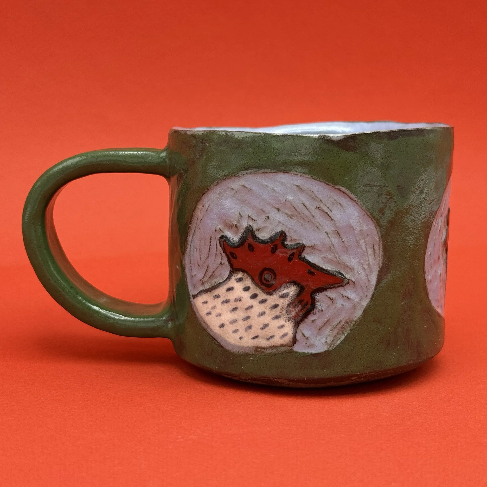 Blue And Green Carved Hen mug